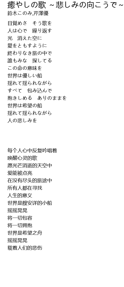 癒やしの歌 悲しみの向こうで Yu Ge Bei Xiang Lyrics Follow Lyrics